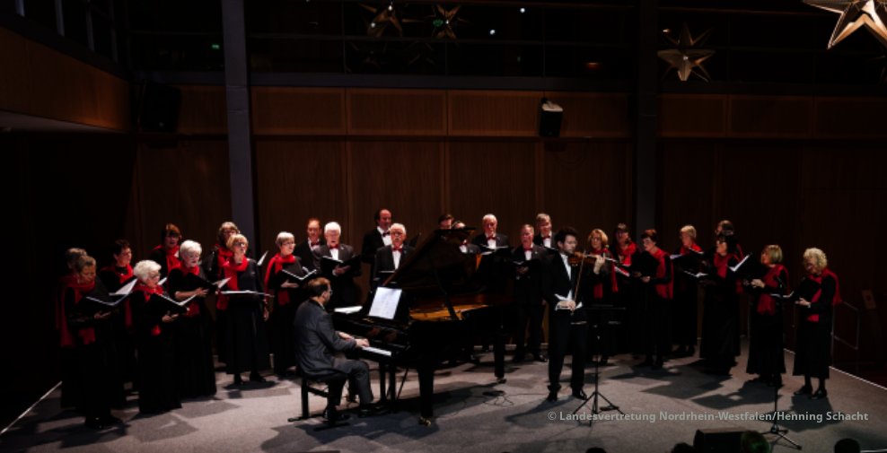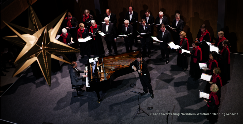 Und am 17. Dezember hatten wir mit einem kleinen Chorensembles, dem Violinisten Roman Brbčić, Marc Unkel als Pianist und seiner Tochter Klara die große Ehre, das Adventskonzert in der Landesvertretung NRW in Berlin zu gestalten. Die Berlinreise und das Konzert wird uns noch lange in Erinnerung bleiben und wir danken Marc Unkel, der das Konzert organisierte und leitete, für seine Initiative.